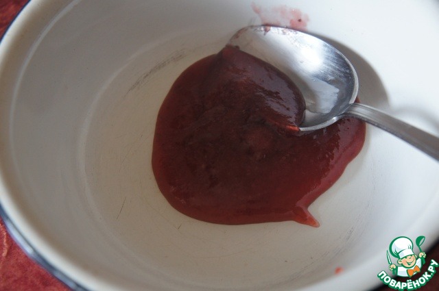 Дальше начались трудности. В рецепте написано: Выложить ягоды слоями на крем. Смешать сок с джемом, довести до кипения и сразу вылить на ягоды?!! Не представляю, как можно вылить горячую заливку на застывший крем, ведь он сразу же начнет таять. Тем более, что заливка получилась очень жидкой, хоть я ее и поуваривала немного. Сколько джема в рецепте не указано... "Немного" понятие весьма относительное! Я решила не рисковать. Замочила 12 г желатина, растворила его и смешала с заливкой.