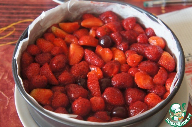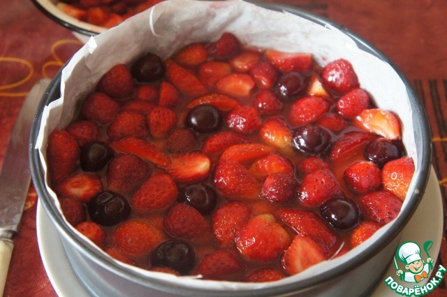 Когда заливка остыла, я слоями выложила ягоды, каждый слой поливая заливкой.