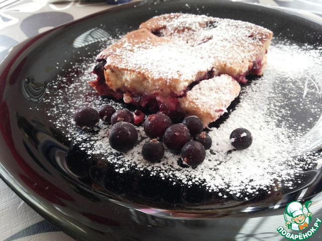 Смазываем форму маслом, выливаем тесто, сверху посыпаем ягодами (я кладу замороженные). советую сначала высыпать 1/2 ягод, и когда тесто поднимется в духовке, минут через 10-15 высыпать вторую половину ягод, так они будут по всему пирогу, но не пригорят (т. к. не касаются дна). смородинку можно перемешать с сахаром, но я люблю её именно за кислинку, по этому сахара не добавляю, только посыпаю сахарной пудрой в конце.
