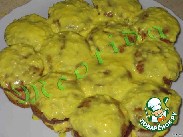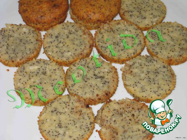 Положить верхнюю часть кексиков слоем на большое блюдо.