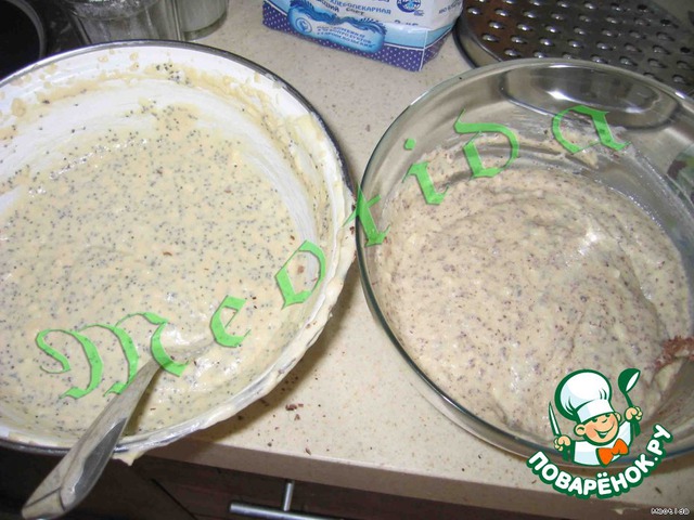 1 ст. л. макового и сверху 1 ст. л. шоколадного.