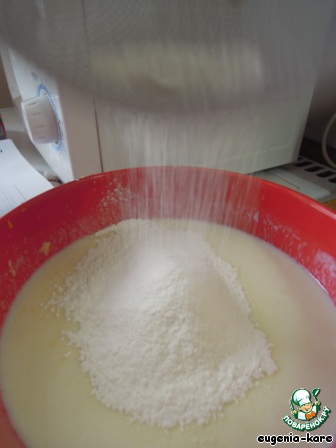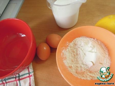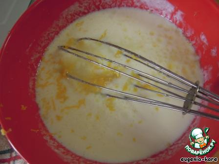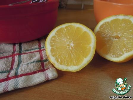 А вот и наш лимон, выжать сок его половины и добавить в яично-кефирную смесь. Перемешать.