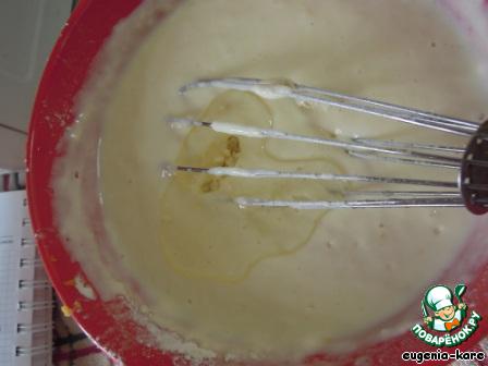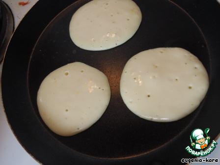 Тесто получается густое, но не как на стандарные оладьи, но и не такое жидкое, как на блины.