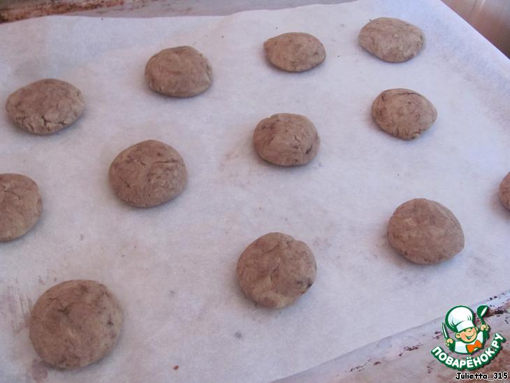 Противень застелить бумагой и выложить шарики из теста (между ними должно быть расстояние не меньше 2 см)