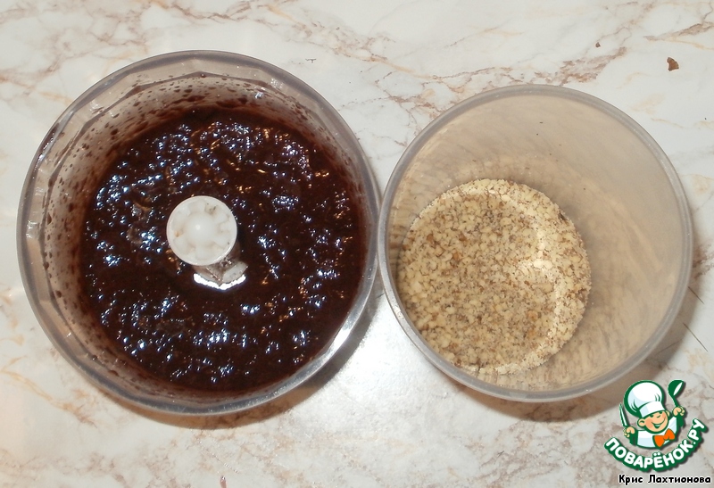 Варенье (желательно домашнее) и орехи измельчить в блендере по отдельности.