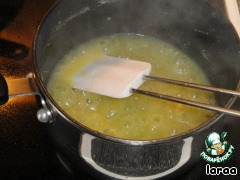 Приготовить соус. Для этого взять кастрюлю, положить в нее масло, сметану и сахар. Довести до кипения и, убавив огонь, проварить еше 3 мин.