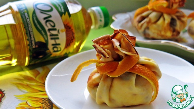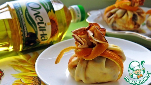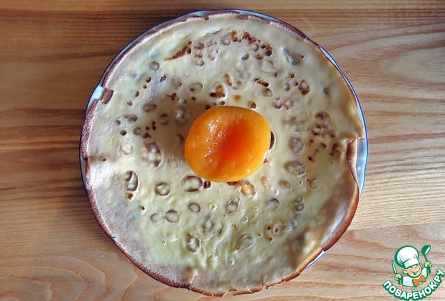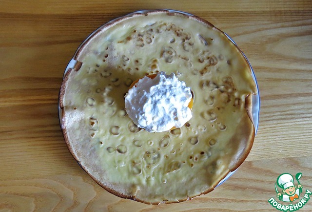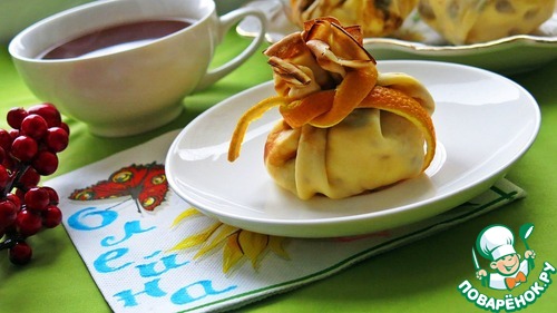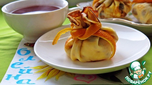 Постепенно поднимаем края блинчика и перевязываем апельсиновой ленточкой! Наш "Подарок" готов!