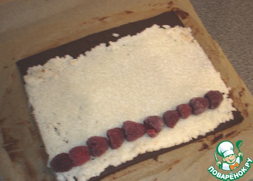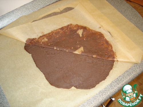 Так же поступите и с рисом. Раскатайте между листами пергамента и переложите на шоколадную основу.