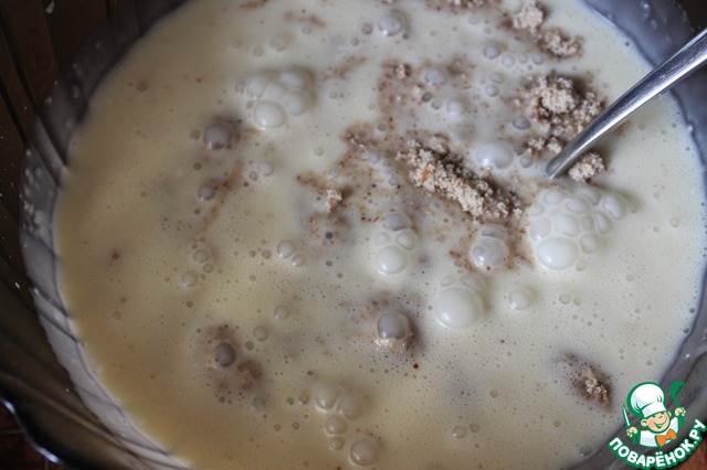 Яйца взбила с коричневым сахаром, добавила размягченное масло, еще немного крутанула, добавила сыр маскарпоне и еще прокрутила на низких оборотах