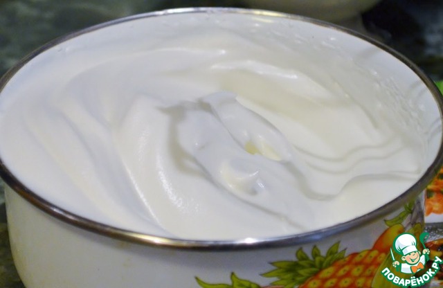 Взбить белки в плотную пену, добавить сахар и продолжать взбивать до гладкости.