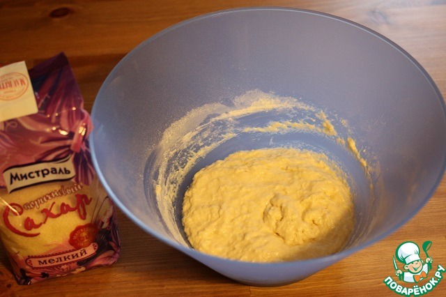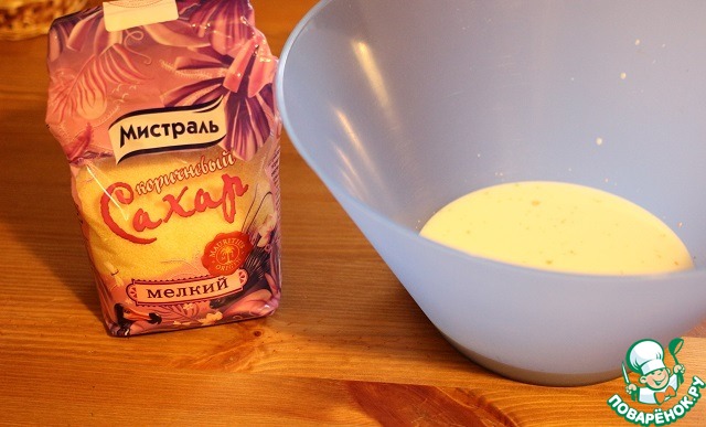 4. Масло растопить, добавить в него сахар и яйца, хорошо размешать.