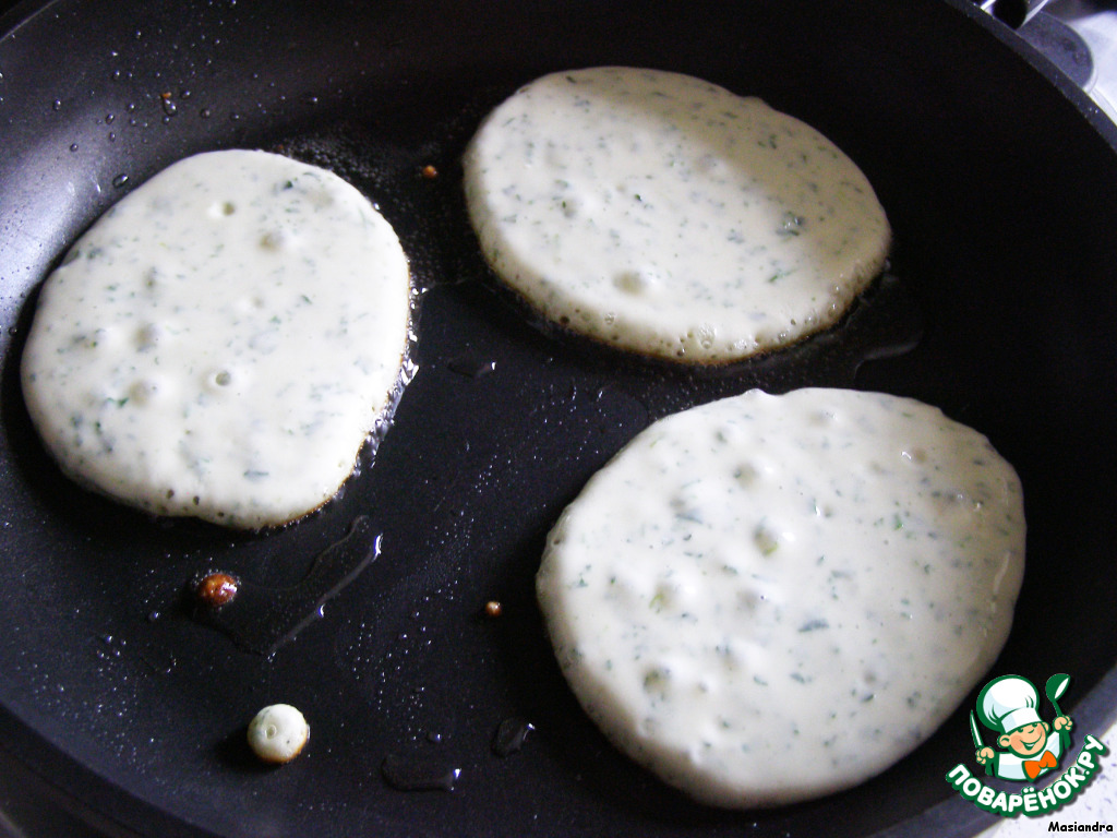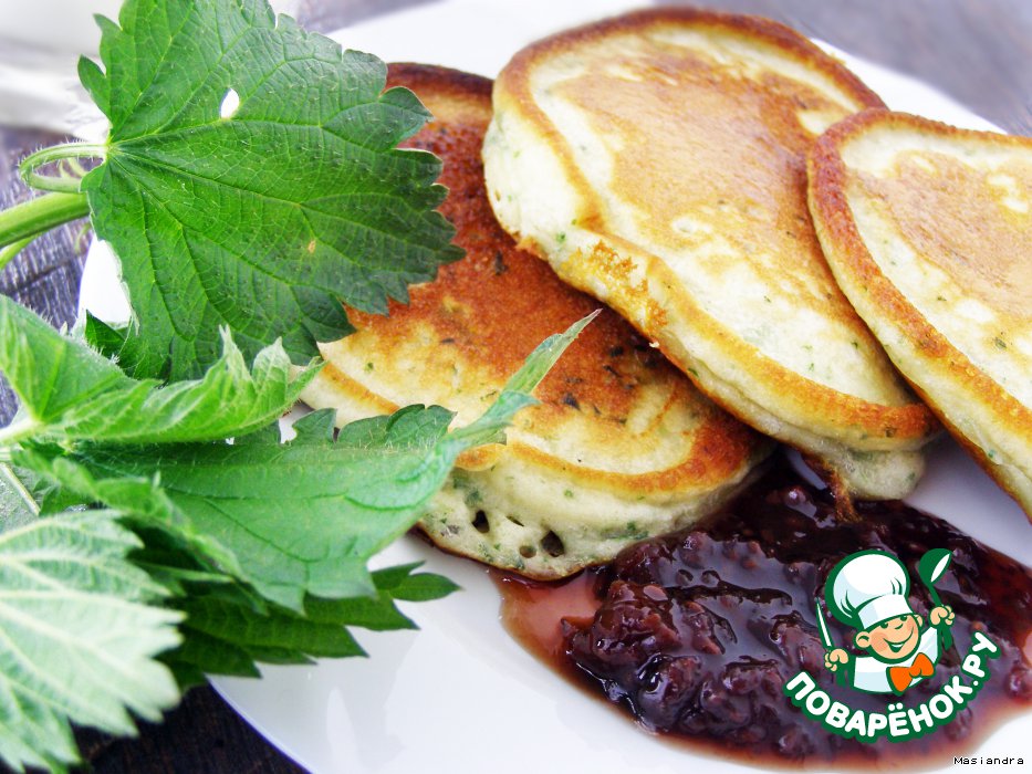 | Яркие, красивые оладьи с молодой крапивой и листьями молодого одуванчика. |