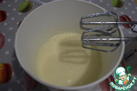Соединить сливки, остывший желатин, сахар, лимонную цедру и брусничный соус.