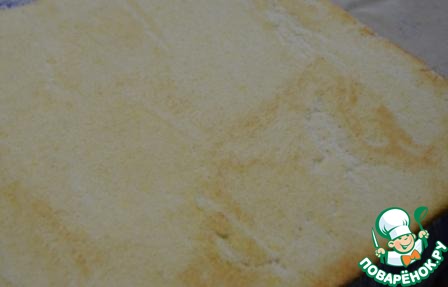 Готовый бисквит вынуть из духовки, пока он горячий осторожно снять бумагу.