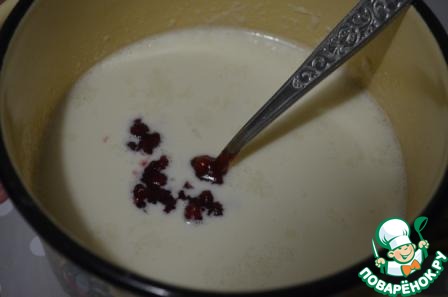 Сверху осторожно вылить сливочно -брусничное желе. Поставить в холодильник до полного застывания.