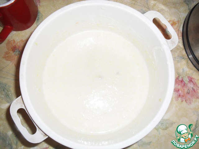 Смешать яйца с сахаром (сахара брать 1,5 стакана), хорошо перемешать, добавить все остальное:Муку 1,5 стакана, морковь (мелко натертую), соду и все это хорошенько перемешать.