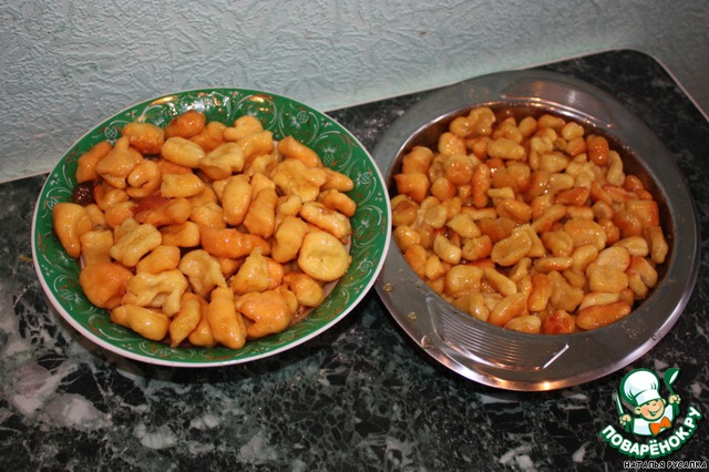 | Это блюдо родом из детства, начнете есть - оторваться невозможно! Очень сладкое и хрустящее! Оформив чак-чак по-новогоднему - сделаете отличный десерт к торжеству! На конкурс:"Gorenje: новогодняя композиция" |