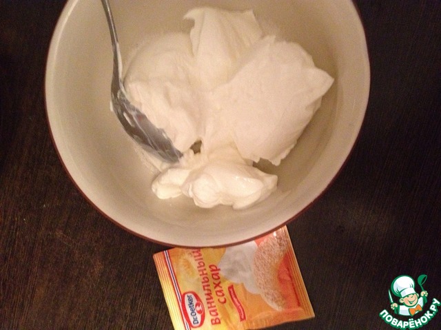 Готовим крем: сметана+сахар+ ванильный сахар=перемешать