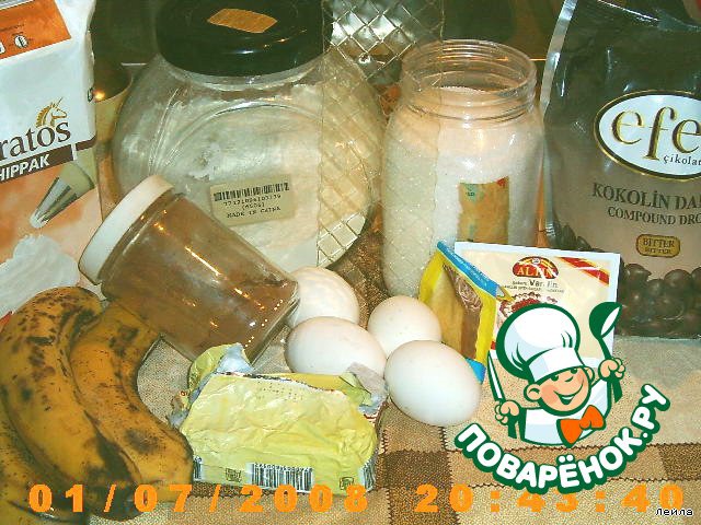 Банан размять (я взбила), смешать с творогом, сах. песком, шоколадной стружкой,