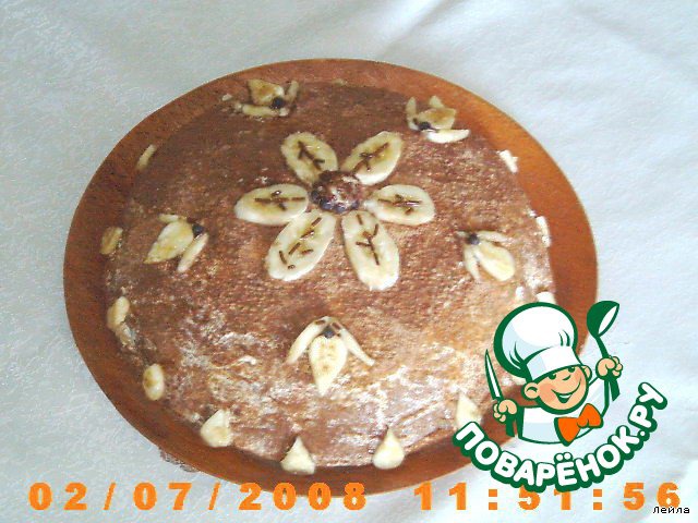 | ПОСВЯЩАЕТСЯ "ПОВАРЕНКУ" Ароматный, нежный творожный крем со взбитыми сливками, ломтиками бананов и шоколадом. B честь вчерашнего моего выигрыша (то есть "обмываем"). |