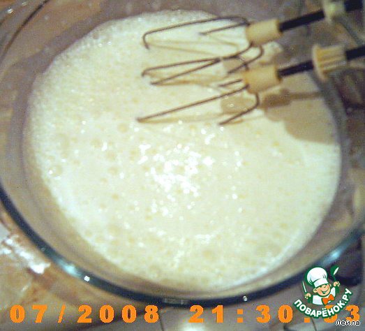 Взбить желтки с сах. песком и с ванильн. сахаром, влив 4 ст.л. горячей воды.