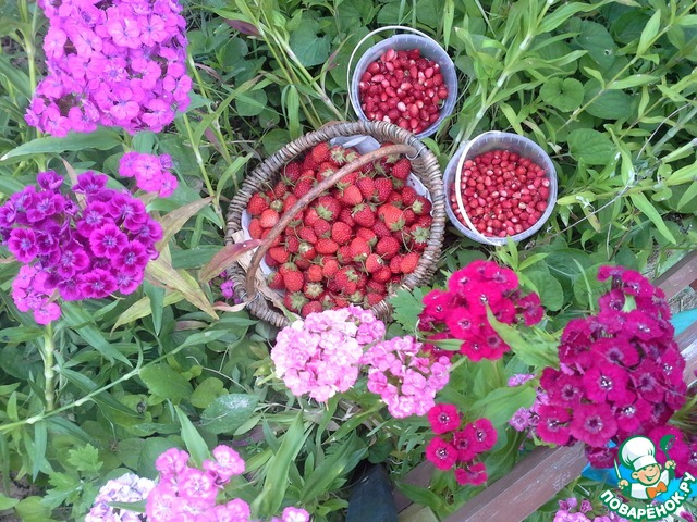 | Не могу остановиться в приготовлении десертов и блюд с клубникой... она (клубника) продолжает радовать своим обильным урожаем, ну а я балую своих родных разными вкусностями с ней же! Приглашаю и вас полакомиться этими сочными и ароматными ягодами! Спасибо Лерочке Насыповой за вдохновение с бокалами... |