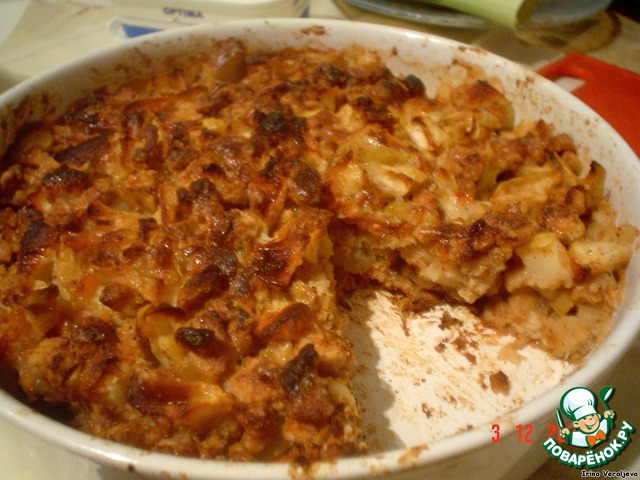 | Рецепт запеканки обнаружила недавно в местном журнале. Попробовала - интересно, еще один способ уничтожения урожая яблок. |