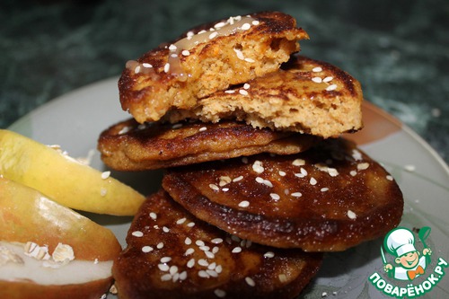 | Просто, но со вкусом - эти слова очень подходят к этому рецепту. Не совсем обычные оладьи из овсяной муки, но на вкус очень нежные, яблоко и морковь совсем не ощущаются, но придают изысканный вкус, а аромат ванили и корицы завораживает! |