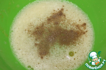 Взбиваем яйцо, сахар, соль, ваниль и корицу.