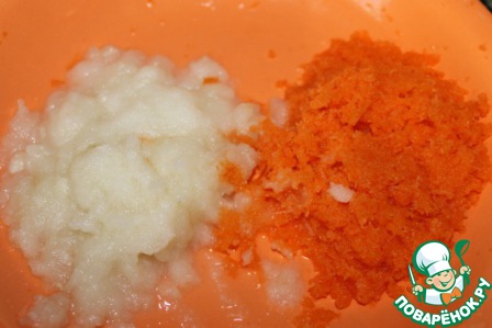 Натираем на самой мелкой тёрке морковь и яблоко.