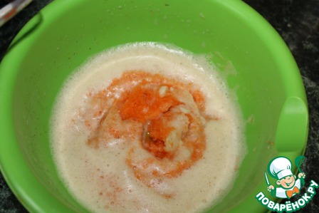 Добавляем соду и муку, перемешиваем. Консистенция теста должнa быть, как густая сметана.