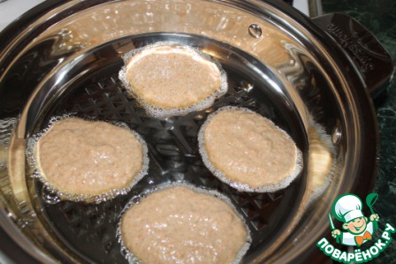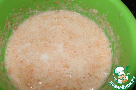 Добавляем подогретый кефир (не кипяток, чтоб яйцо не свернулось, но горячий), перемешиваем.