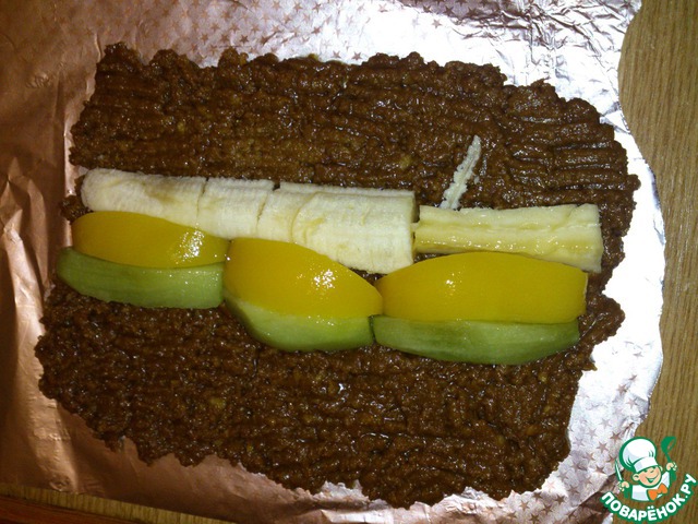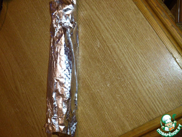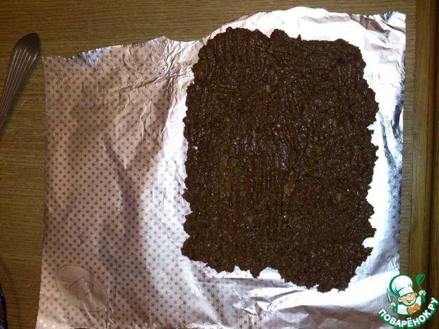 Выложить массу на фольгу в виде прямоугольника (лучше смочить руки водой)