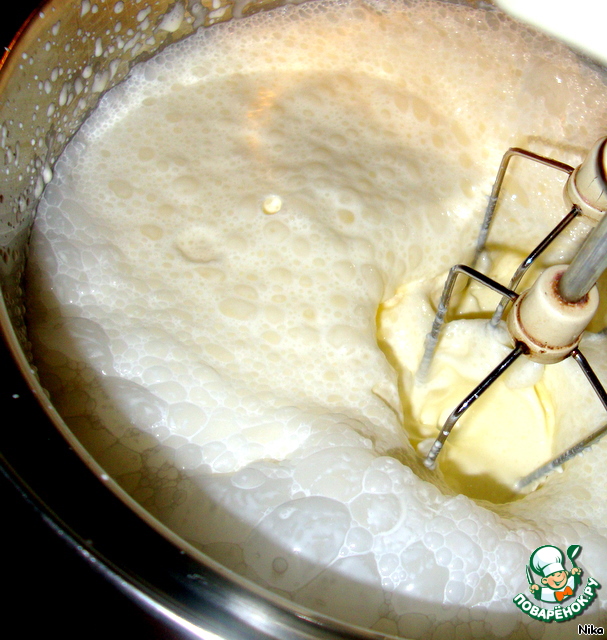 Сливки (35% 200 мл) вылить в ёмкость для взбивания миксером