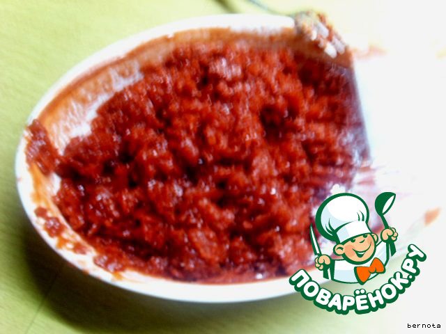 Пропускаем малиновую массу через сито, чтобы не было косточек. Закрываем плёнкой и в морозильник на 4 часа