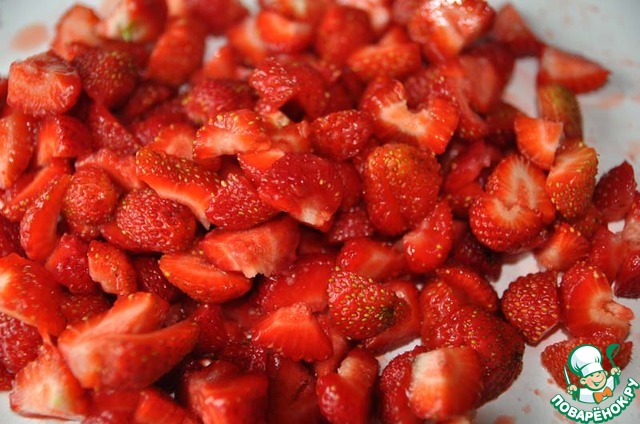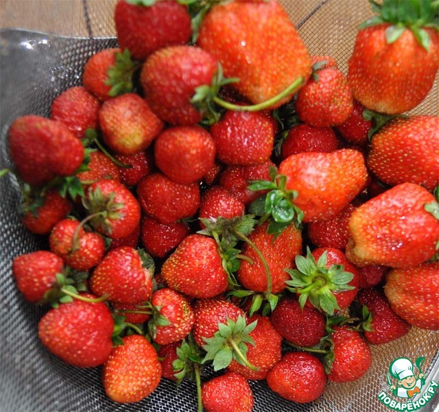 Клубнику моем, очищаем от плодоножек.