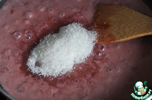 Наливаем сухое красное вино или виноградный сок, помешиваем рис до выпаривания.