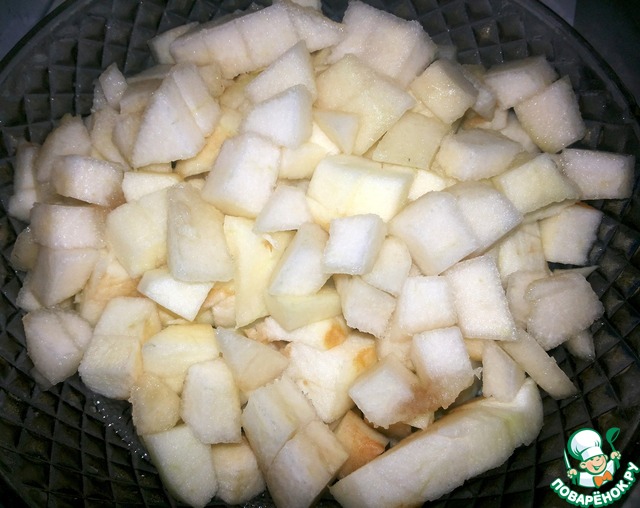 Яблоки и грушу очистить от кожицы и нарезать кубиком.