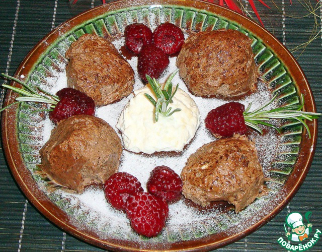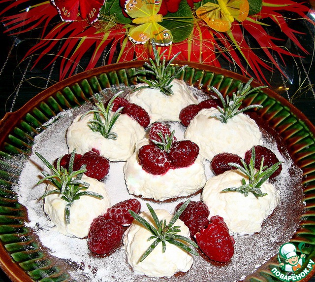 Украшала свежезамороженной малиной, розмарином ( мои детки не любители мяты, она здесь была бы как раз к месту. )