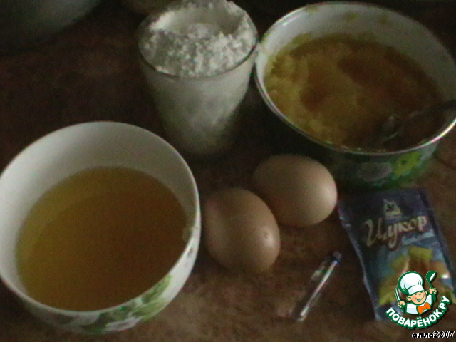 Добавить ванильный сахар, растопленное сливочное масло, 2 яйца, ароматизатор и 1 стакан муки. Замесить тесто.