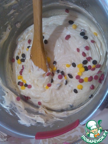 В последнюю очередь добавьте разноцветные шоколадные капли и рамешайте ложкой. У меня вот такие...