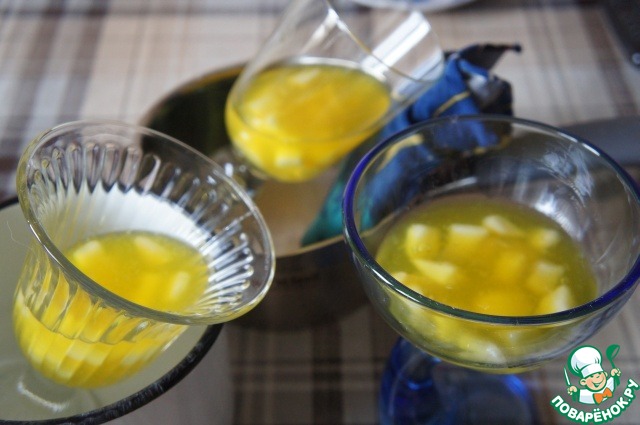 Желатин залить небольшим количеством воды и оставить до набухания.
