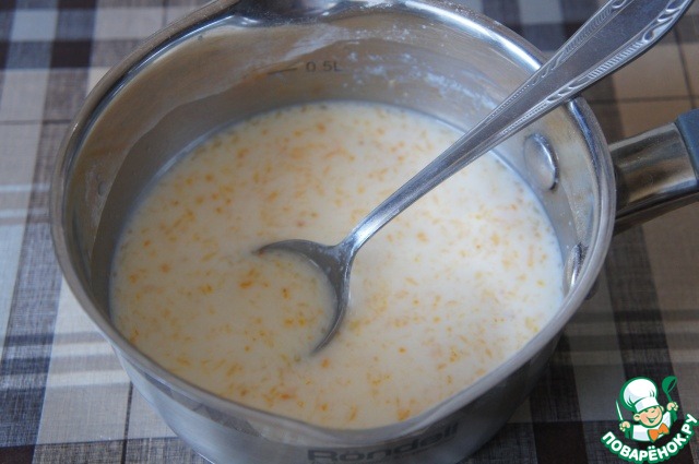 Цедру натереть на мелкой терке. Выдавить сок и смешать его с молоком.