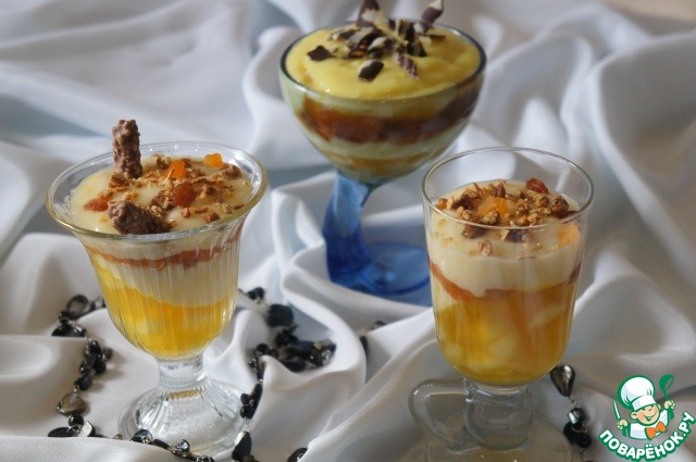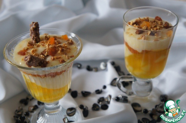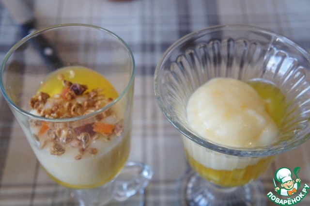 На джем уложить 2-3 кружочка банана и закрыть слоем пудинга. Сверху снова посыпать гранолой. Рецепт гранолы найдете здесь: http://www.povarenok .ru/recipes/show/880 36/.