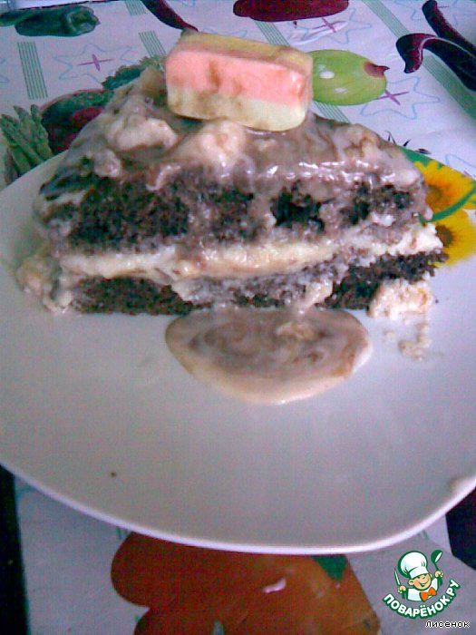 Готовим глазурь и поливаем тортик.