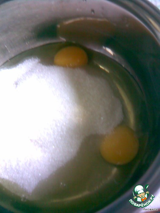 смешать яйца и сахар.