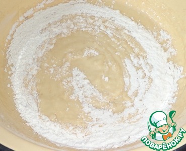 Небольшими порциями всыпаем муку и замешиваем тесто.