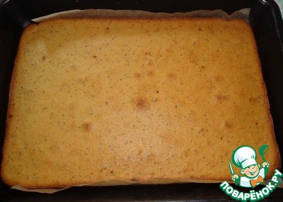 Прямоугольную форму для запекания застелить пекарской бумагой, вылить тесто в форму и равномерно распределить.