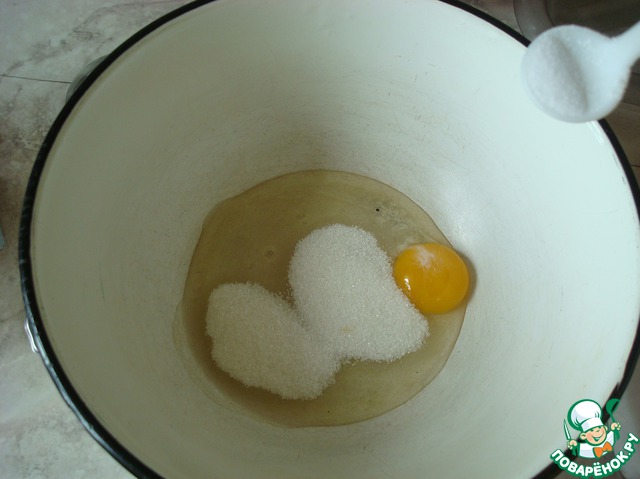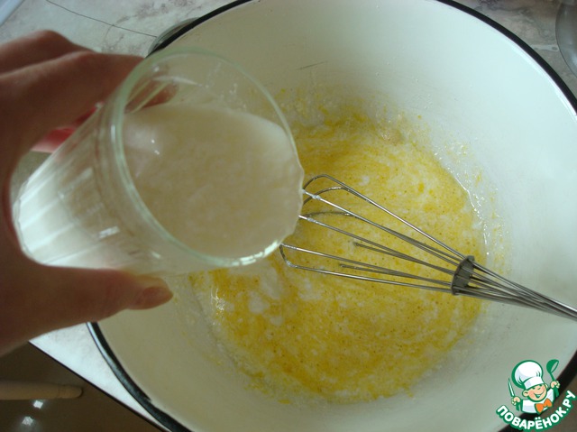 Влить простоквашу (тесто сразу начинает пузыриться), перемешать