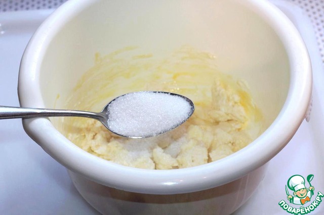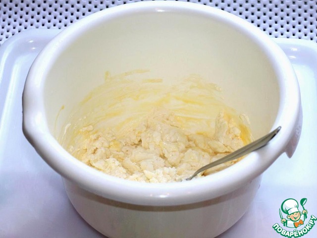 Всыпаем просеянную муку и хорошо вымешиваем творожную массу, чтобы не было комков.